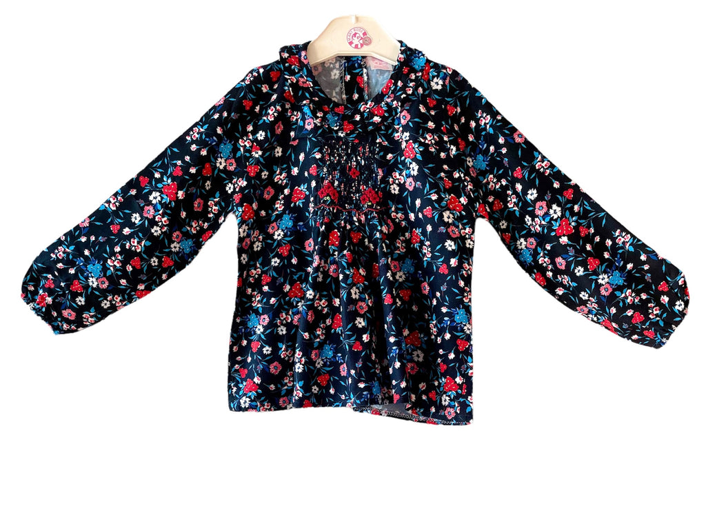Pour garder une touche smockée sur sa tenue sans pour autant porter de robe, la blouse est parfaite pour remplir ce rôle. Ce modèle-ci est noir à motifs fleuris multicolores. A manches longues, ornée de volants au col et au bout des manches, une bande smockée et des broderies faites à la main par dessus, une forme évasée et légère : cette pièce saura se marier à la perfection avec de nombreuses tenues dont des jupes, pantalons, bermudas, shorts... Intemporelle et pour toutes les occasions, cette jolie blouse saura ravir les plus petites comme les plus âgées !