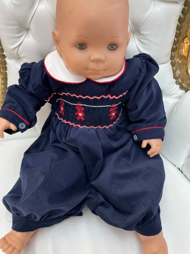 Barboteuse smocks à manches longues bleu marine brodée à la main