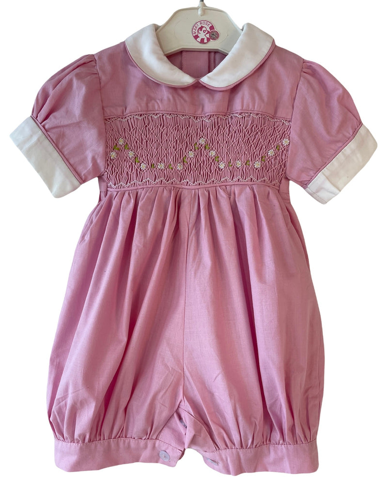 Barboteuse smocks "Amaryllis" Rose col blanc