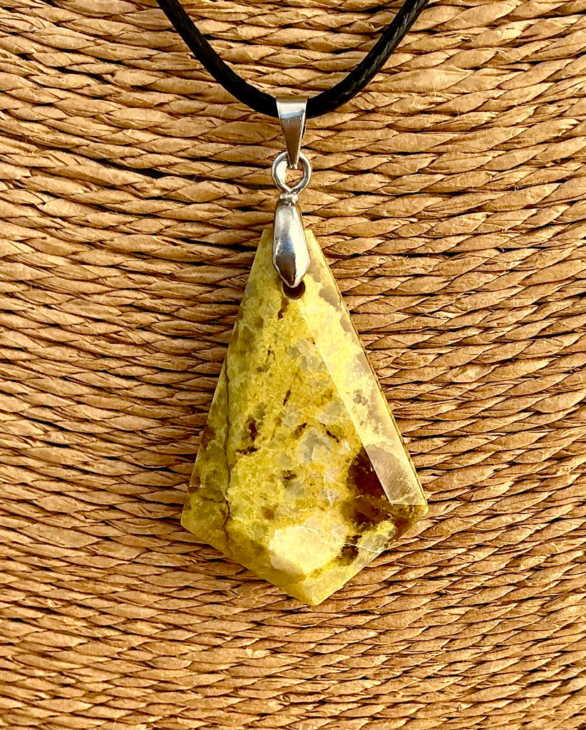 Pendentif en pierre véritable polie, vendu avec un collier en cordon noir remplaçable.