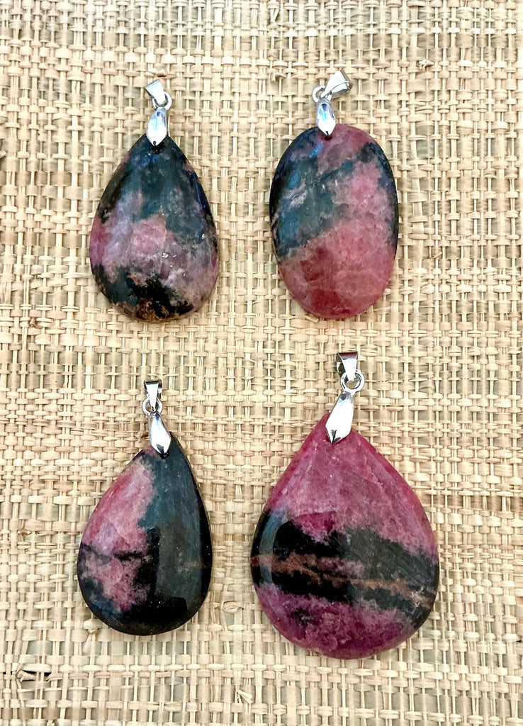 Pendentif en pierre véritable polie, vendu avec un collier en cordon noir remplaçable.