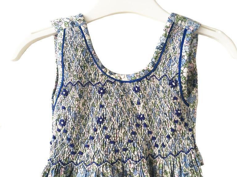 Pinafore Smocked dress PISO - Blue Flowers