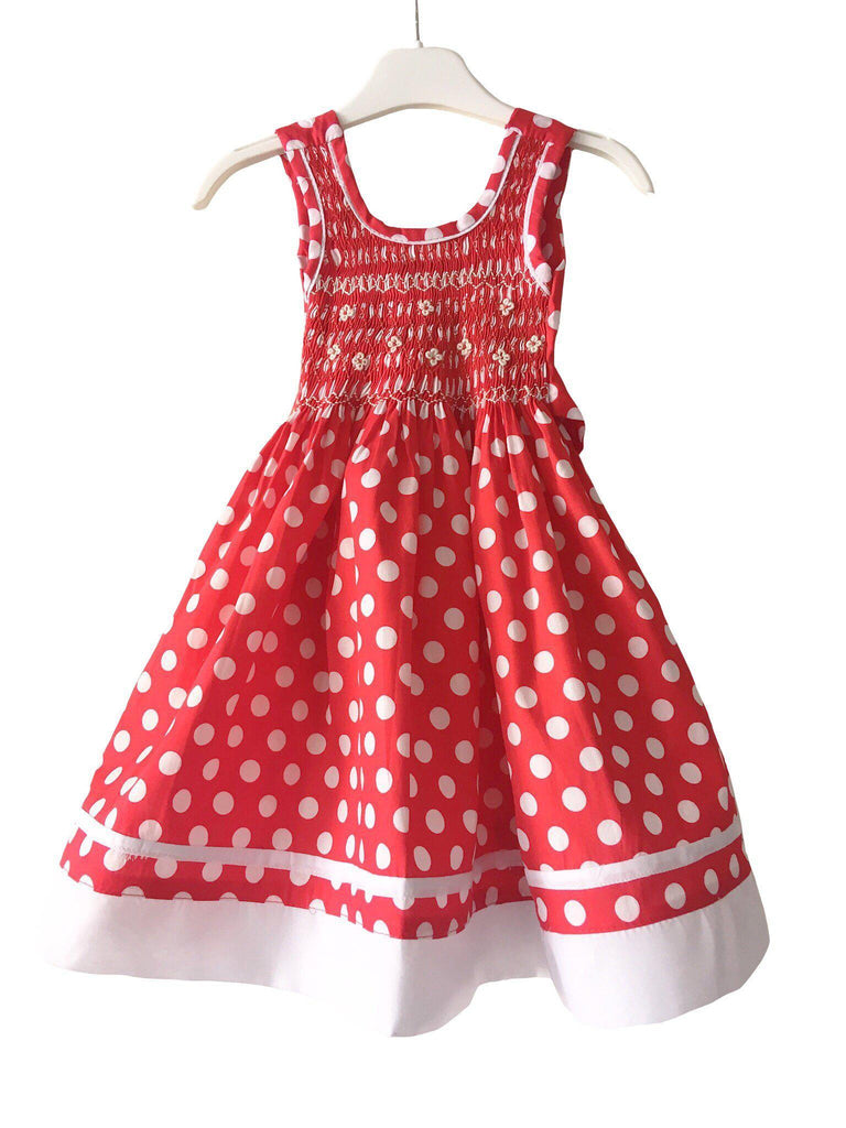 Red "Mini" Chasuble Smocked Dress with White Dots