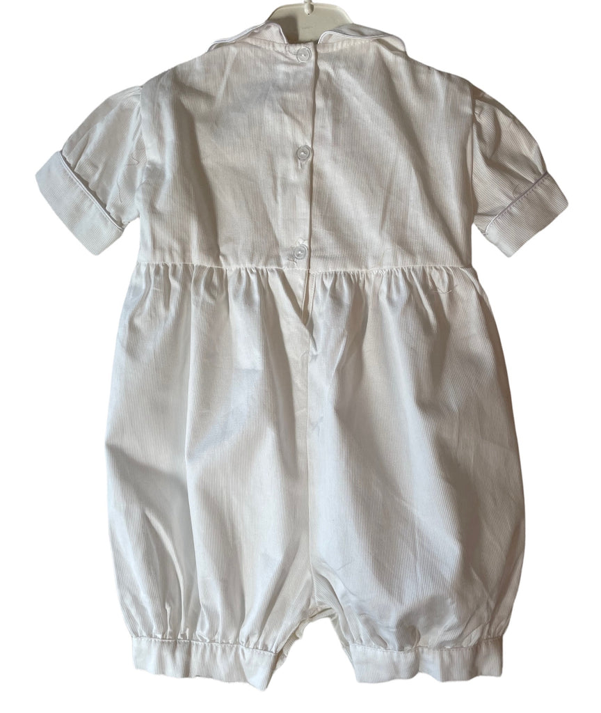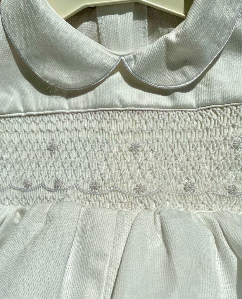Barboteuse smocks "Baptême" Blanc broderies blanches