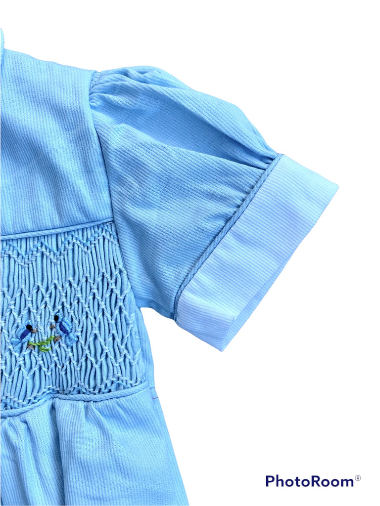 Barboteuse smocks "Iris" Bleu ciel col blanc