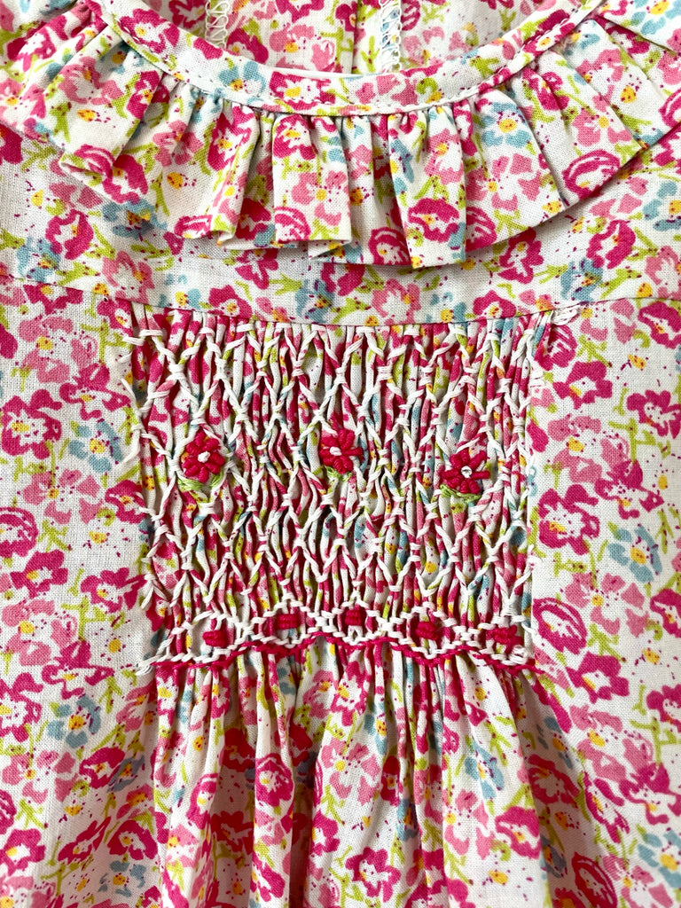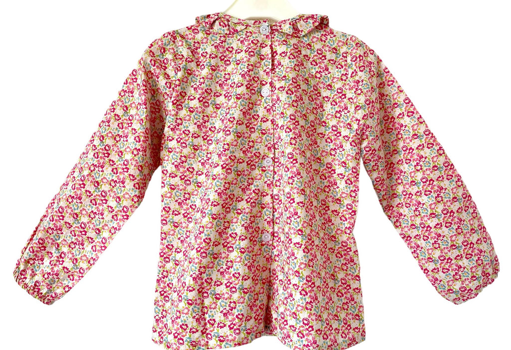 Pour garder une touche smockée sur sa tenue sans pour autant porter de robe, la blouse est parfaite pour remplir ce rôle. Ce modèle-ci est orné de fleurs multicolores sur fond blanc. A manches longues, ornée de volants au col et au bout des manches, une bande smockée et des broderies faites à la main par dessus, une forme évasée et légère : cette pièce saura se marier à la perfection avec de nombreuses tenues dont des jupes, pantalons, bermudas, shorts... Intemporelle et pour toutes les occasions, cette jolie blouse saura ravir les plus petites comme les plus âgées !