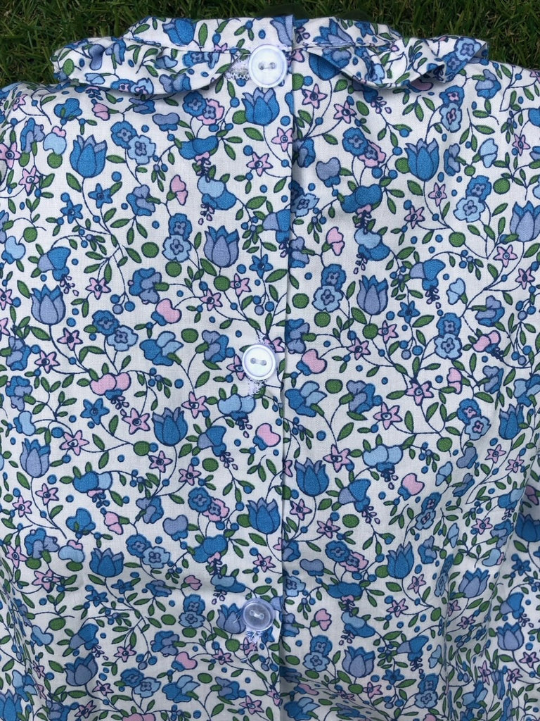 Pour garder une touche smockée sur sa tenue sans pour autant porter de robe, la blouse est parfaite pour remplir ce rôle. Ici, le modèle est à fleurs bleues sur fond blanc. A manches longues, ornée de volants au col et au bout des manches, une bande smockée et des broderies faites à la main par dessus, une forme évasée et légère : cette pièce saura se marier à la perfection avec de nombreuses tenues dont des jupes, pantalons, bermudas, shorts... Intemporelle et pour toutes les occasions, cette jolie blouse saura ravir les plus petites comme les plus âgées !