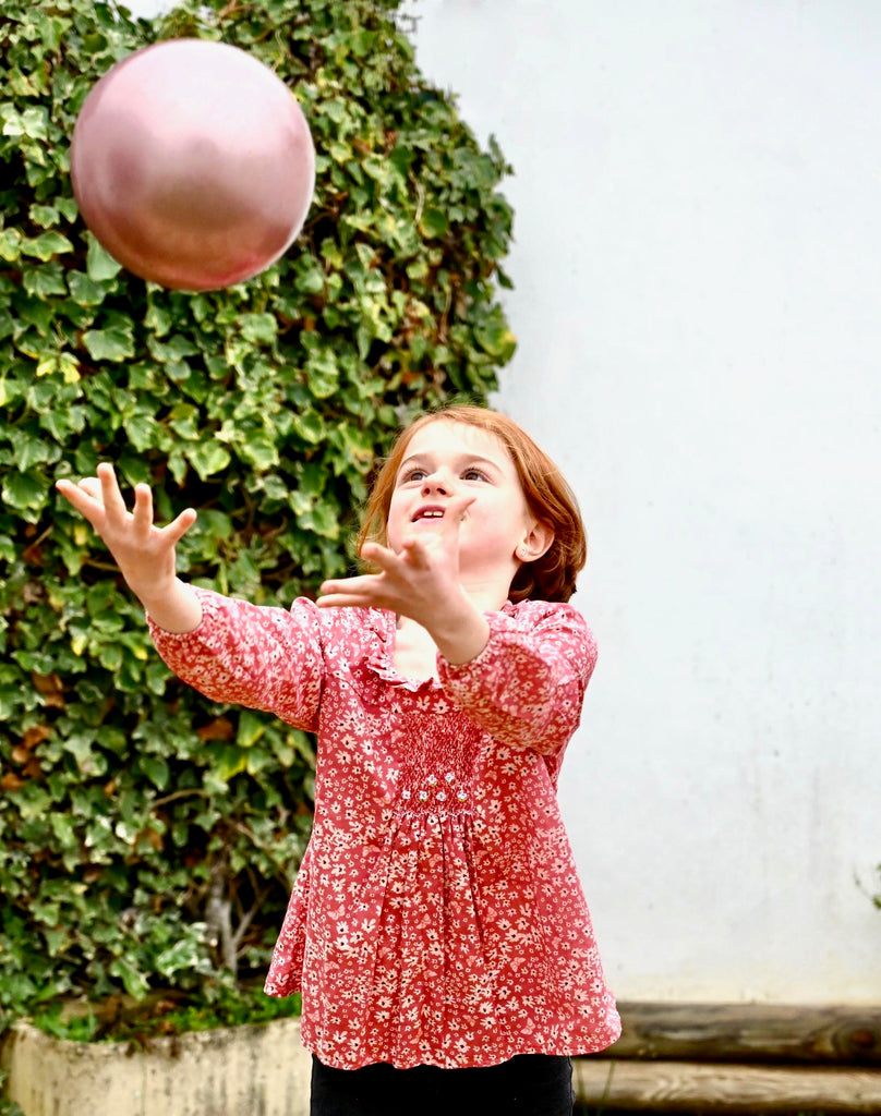 Pour garder une touche smockée sur sa tenue sans pour autant porter de robe, la blouse est parfaite pour remplir ce rôle. Ici, le modèle est rouge tirant vers le rose couvert de fleurs et papillons blancs. A manches longues, ornée de volants au col et au bout des manches, une bande smockée et des broderies faites à la main par dessus, une forme évasée et légère : cette pièce saura se marier à la perfection avec de nombreuses tenues dont des jupes, pantalons, bermudas, shorts... Intemporelle et pour toutes les occasions, cette jolie blouse saura ravir les plus petites comme les plus âgées !
