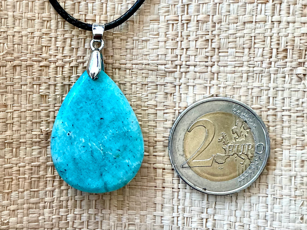 Pendentif en pierre véritable polie, vendu avec un collier en cordon noir remplaçable.