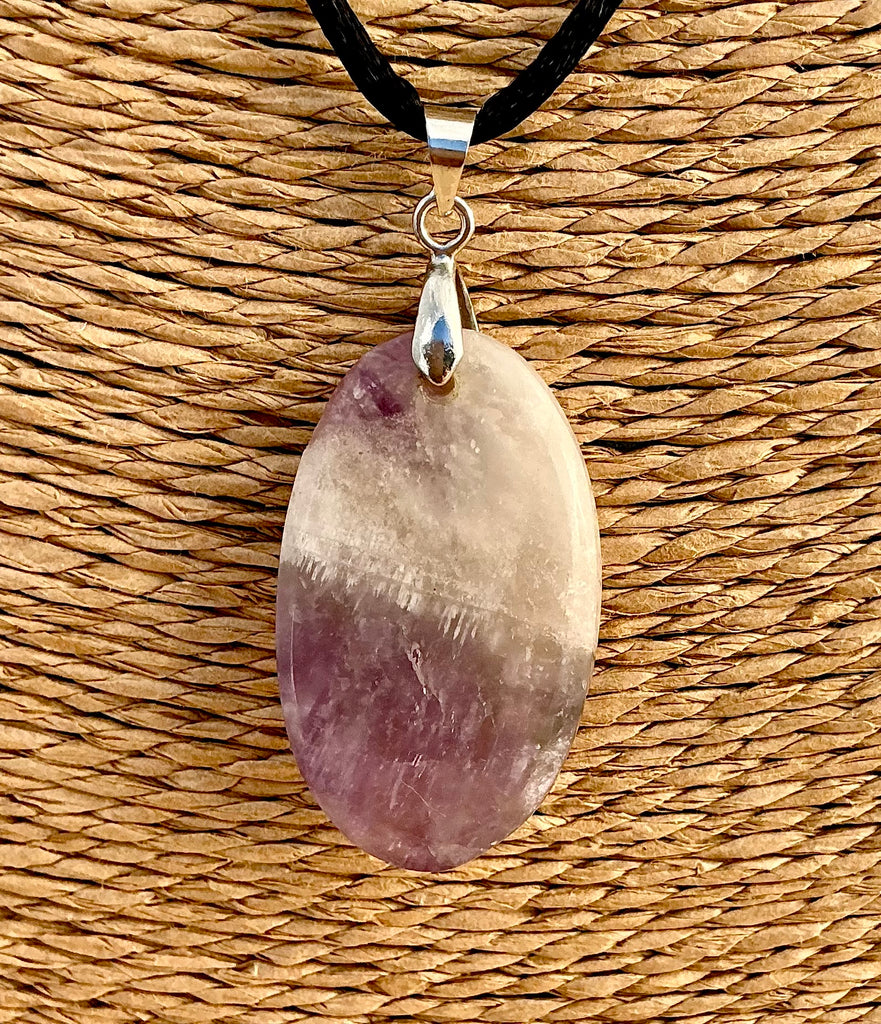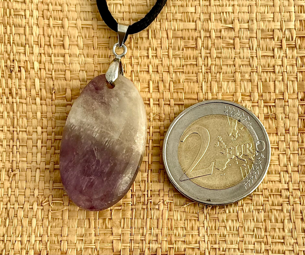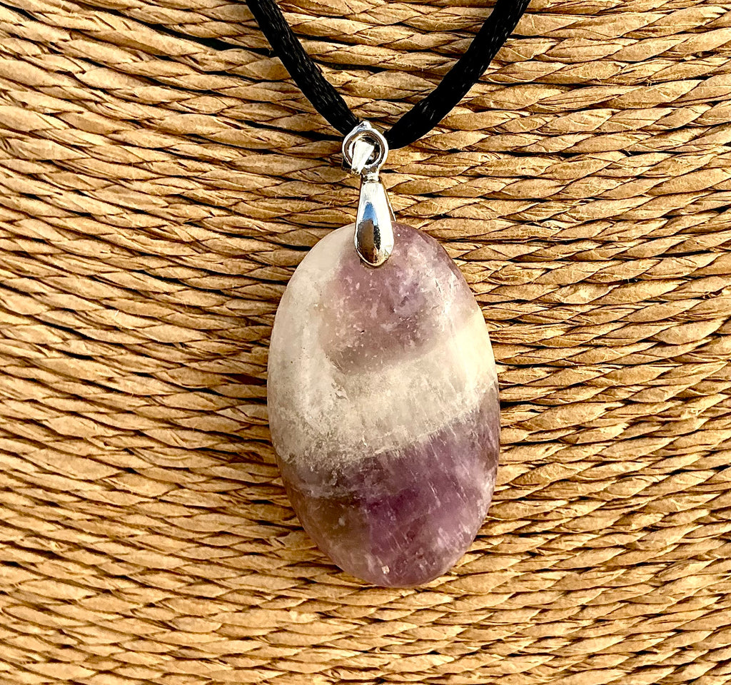 Pendentif en pierre véritable polie, vendu avec un collier en cordon noir remplaçable.