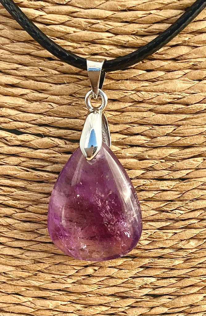 Pendentif Améthyste - Pierre Plate goutte d’eau