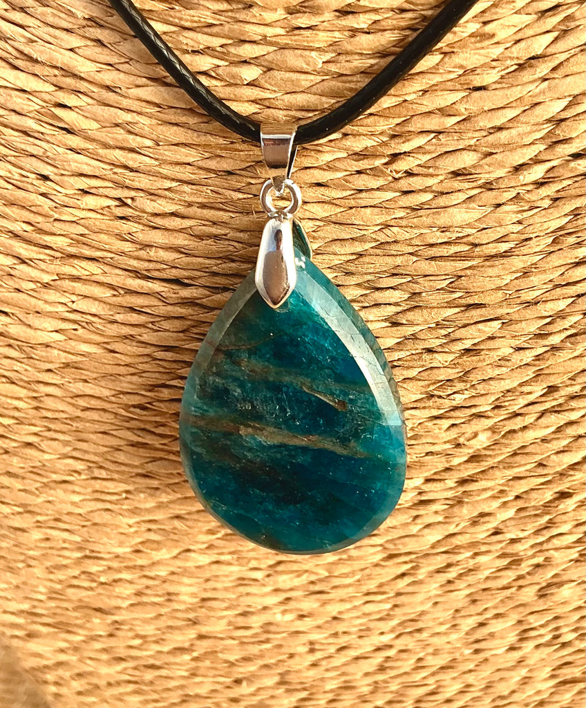 Pendentif Apatite Bleue - Pierre Plate en forme de goutte