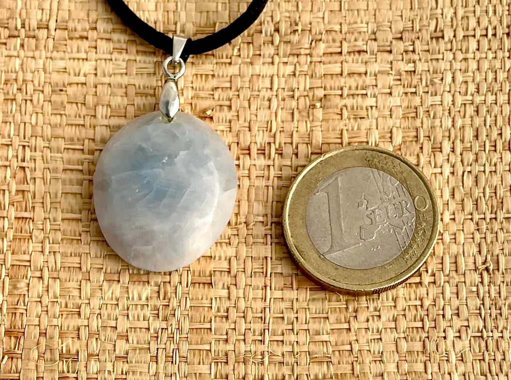Pendentif Calcite bleue - Pierre Plate forme ovale