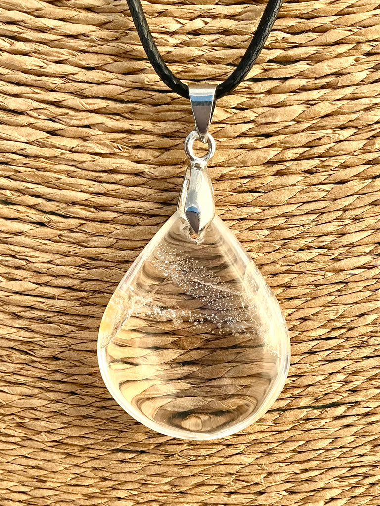 Pendentif en pierre véritable polie, vendu avec un collier en cordon noir remplaçable.