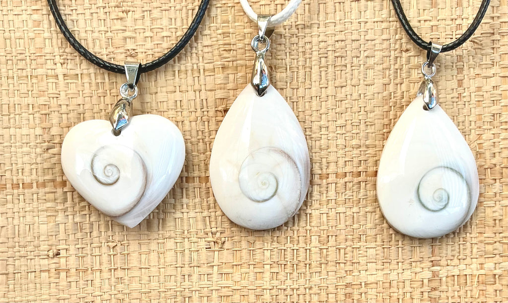 Pendentif en pierre véritable polie, vendu avec un collier en cordon noir remplaçable.