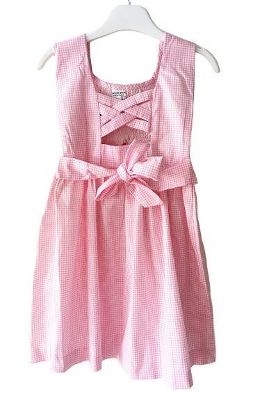 La robe chasuble smockée est un modèle incontournable. Le modèle "Sweety" arbore un tissu vichy rose et blanc. Sans manches avec le buste entièrement smocké et des broderies faites à la main, un ruban à attacher à l'arrière pour cintrer le modèle ainsi qu'un joli dos ajouré, elle tombe juste au dessus du genou et donne cet effet "robe de princesse" lorsque vos pitchounes tournent sur elles-même.