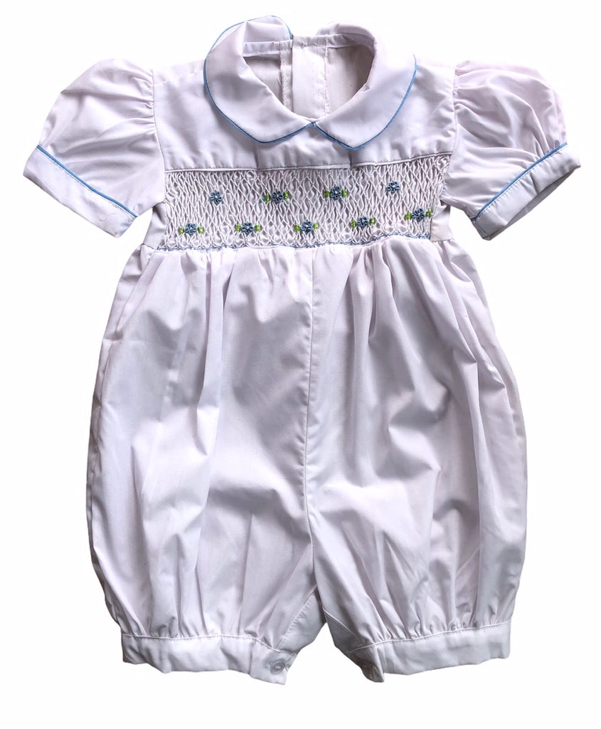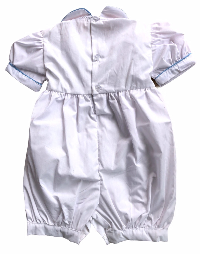 Barboteuse smocks Blanc broderies bleues