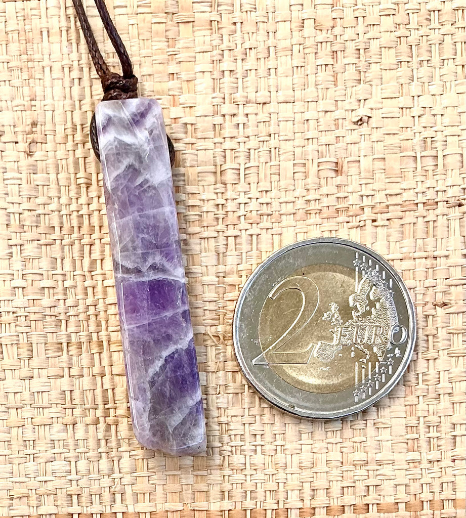 Pendentif en pierre véritable polie, vendu avec un collier en cordon noir remplaçable.