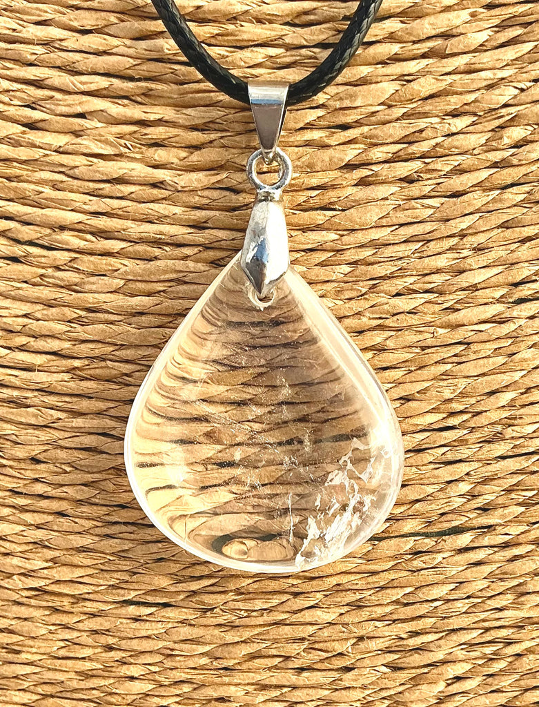 Pendentif en pierre véritable polie, vendu avec un collier en cordon noir remplaçable.