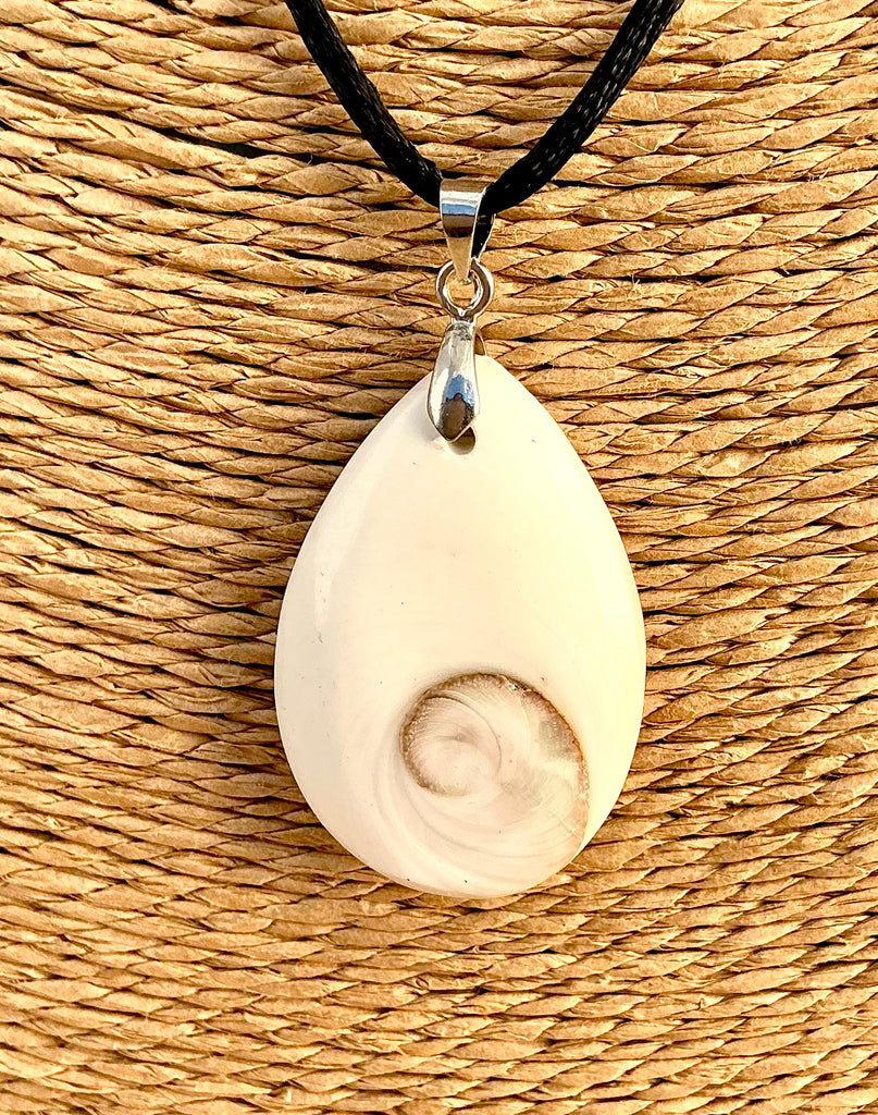 Pendentif en pierre véritable polie, vendu avec un collier en cordon noir remplaçable.