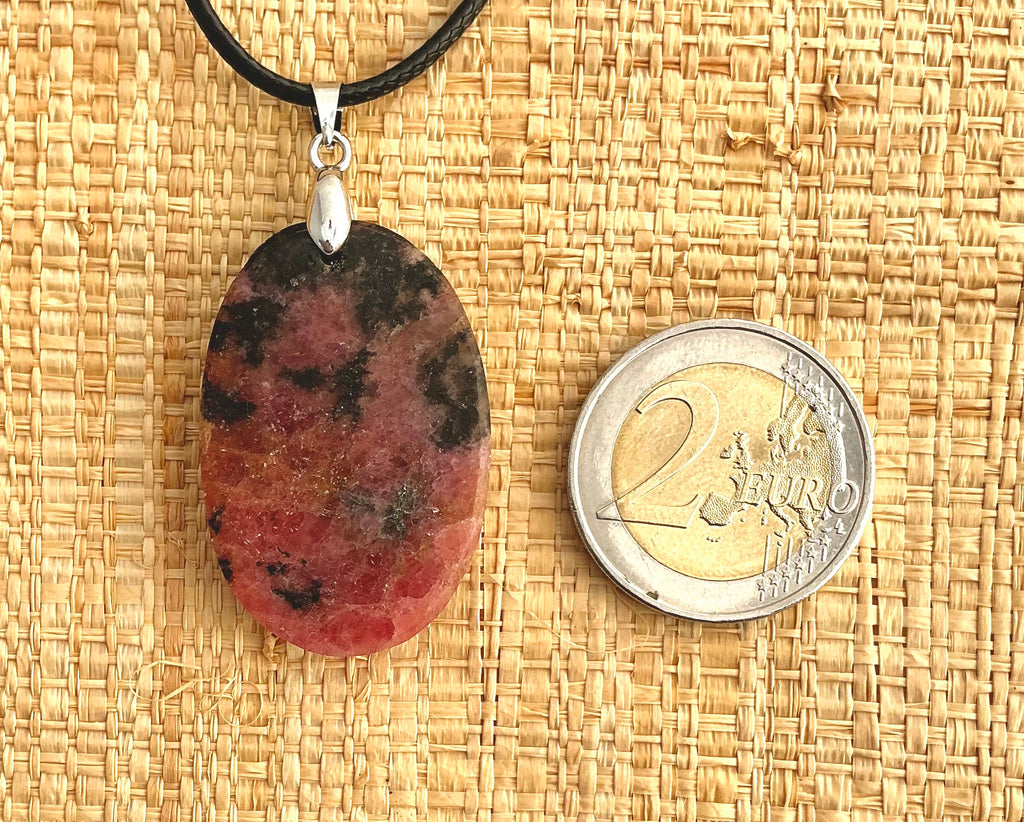 Pendentif en pierre véritable polie, vendu avec un collier en cordon noir remplaçable.