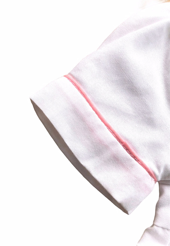 Avec ses manches ballons, son col claudine à liseré et toujours ce buste smocké et brodé à la main, la barboteuse Maki Rose est idéale pour vos tout petits. Ici, le modèle est en tissu uni blanc avec des broderies roses.