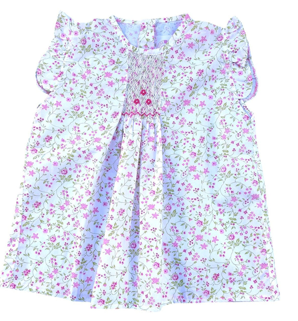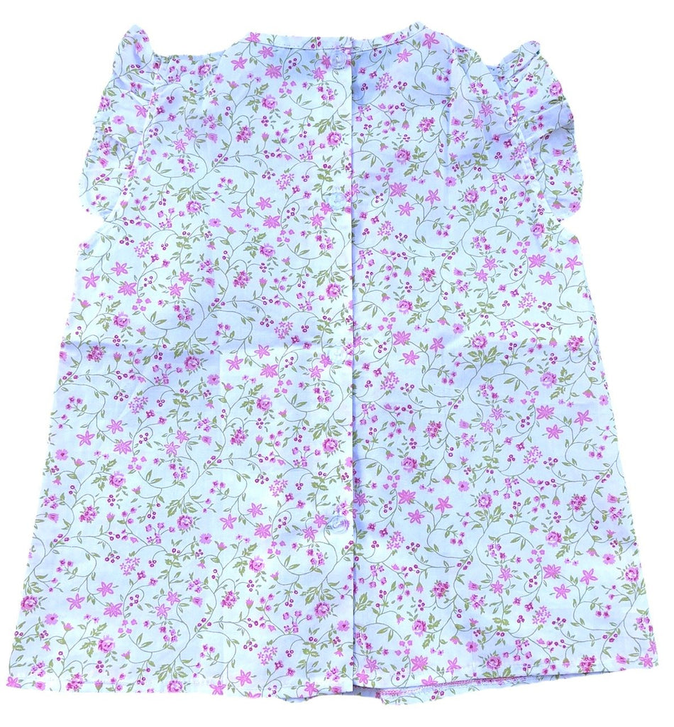Pour garder une touche smockée sur sa tenue sans pour autant porter de robe, la blouse est parfaite pour remplir ce rôle. Ici, le modèle est blanc à fleurs roses et feuillage vert avec de jolies broderies au niveau du col. Sans manches avec de petits volants au niveau des épaules, le col orné d'un carré smocké et de broderies faites à la main, une forme évasée et légère : cette pièce saura se marier à la perfection avec de nombreuses tenues dont des jupes, pantalons, bermudas, shorts... Intemporelle et pour toutes les occasions, cette jolie blouse saura ravir les plus petites comme les plus âgées !