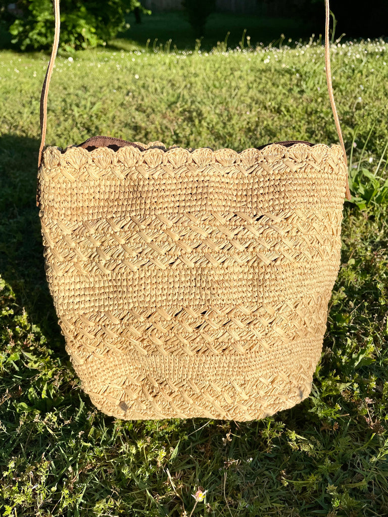 Sac bandoulière en crochet raphia naturel