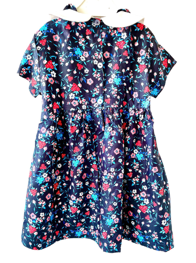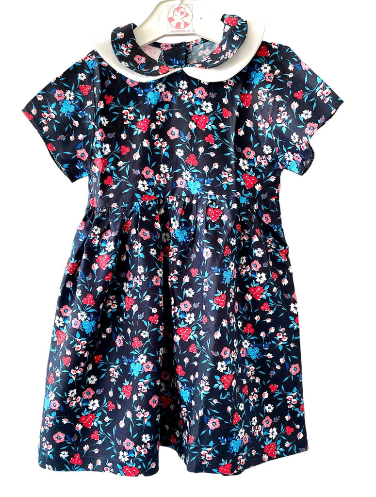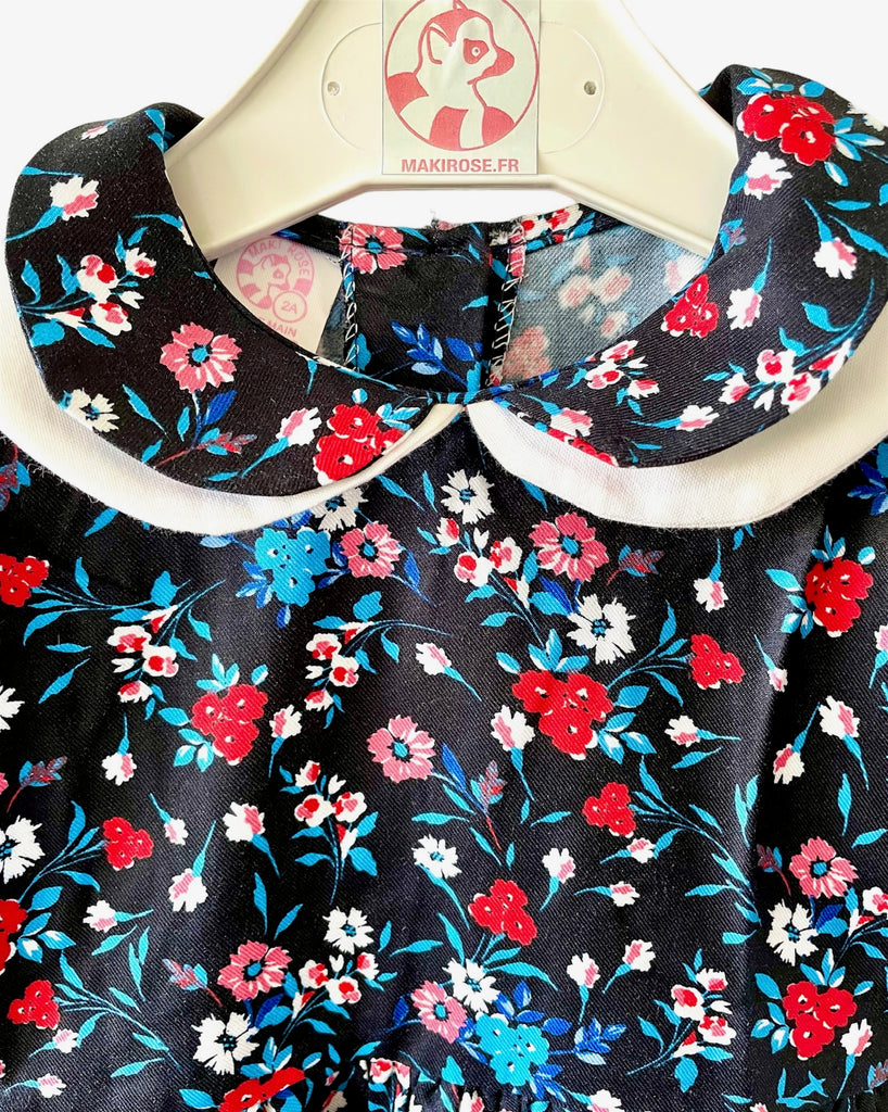 La robe à manches ballons est un modèle classique et idéal pour toutes les saisons. Le tissu de ce modèle arbore des fleurs multicolores sur fond noir. Des manches ballons bouffantes, un double col claudine blanc et du même tissu que la robe ainsi qu'un dos fermé... Elle tombe juste au dessus du genou et donne cet effet "robe de princesse" lorsque vos pitchounes tournent sur elles-même.