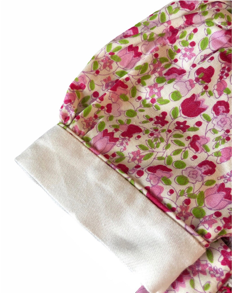 Robe smocks "Bella" Manches Ballons col claudine à Fleurs Rose