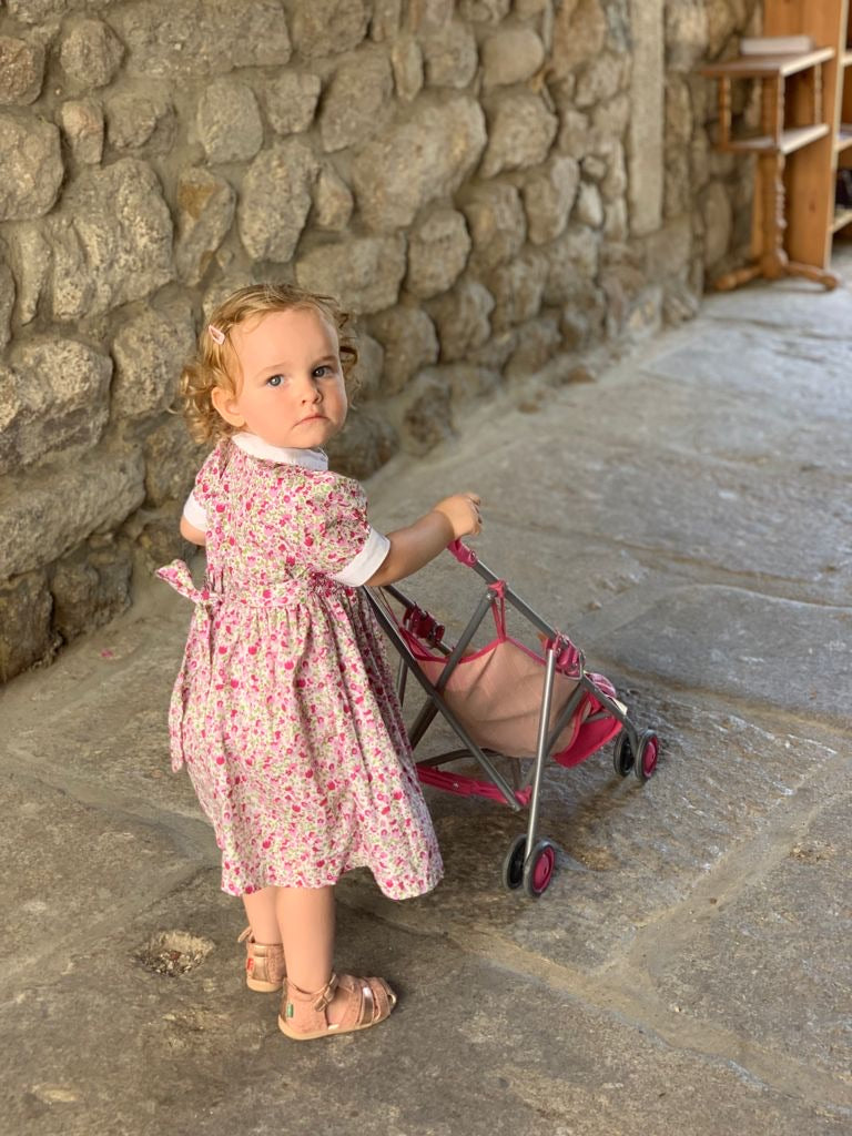 La robe smockée à manches ballons est un modèle classique et idéal pour toutes les saisons. Le modèle "Bella" arbore un tissu fleuri rose et vert sur fond blanc. Jolies manches ballons bouffantes, col claudine blanc avec un liseré fin, buste entièrement smocké et des broderies faites à la main, un ruban à attacher à l'arrière pour cintrer le modèle ainsi qu'un dos fermé par des boutons nacrés... Ce sont tous ces détails qui lui apportent toute son élégance. Elle tombe juste au dessus du genou et donne cet effet "robe de princesse" lorsque vos pitchounes tournent sur elles-même.